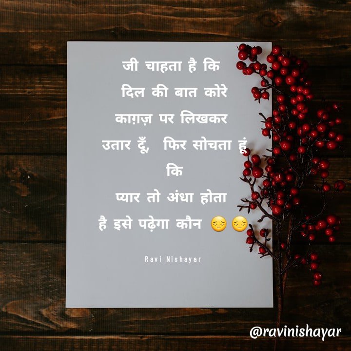 शायरी का क्या मतलब होता है? :- शायरी, शेर-ओ-शायरी या सुख़न भारतीय उपमहाद्वीप में प्रचलित एक कविता का रूप हैं जिसमें उर्दू-हिन्दी भाषाओँ में कविताएँ लिखी जाती हैं। शायरी में संस्कृत, फ़ारसी, अरबी और तुर्की भाषाओँ के मूल शब्दों का मिश्रित प्रयोग किया जाता है। शायरी लिखने वाले कवि को शायर या सुख़नवर कहा जाता है।